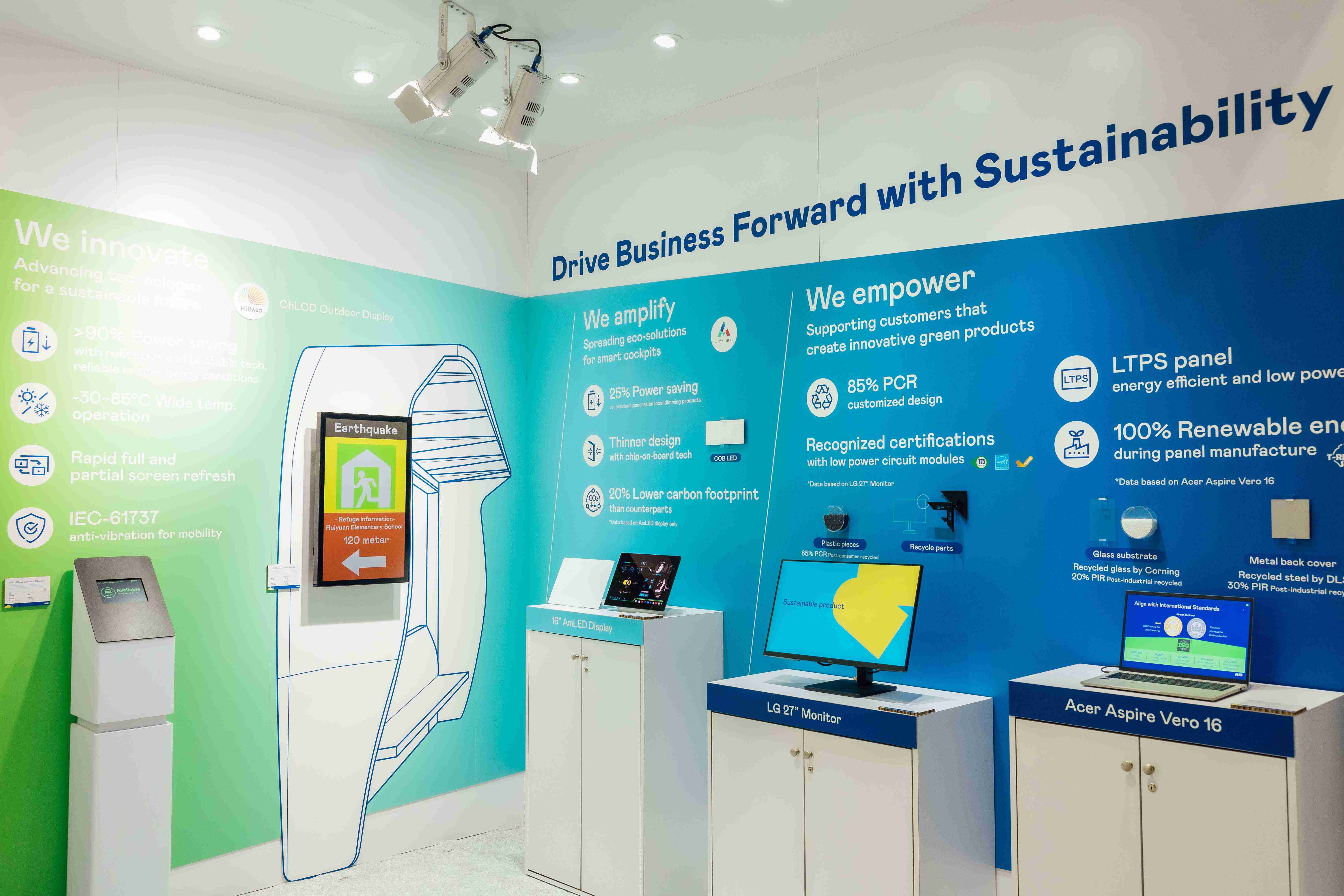 人生就是博运用创新显示技术HiRaso胆固醇液晶双稳态技术达到显示零耗能、、、、扩大节能省电的AmLED显示技术应用于车用产品、、、以再生的消费后回收(PCR)塑料及全绿电生产之面板,,,,应用于笔电及萤幕,,,,增加绿色价值。。。