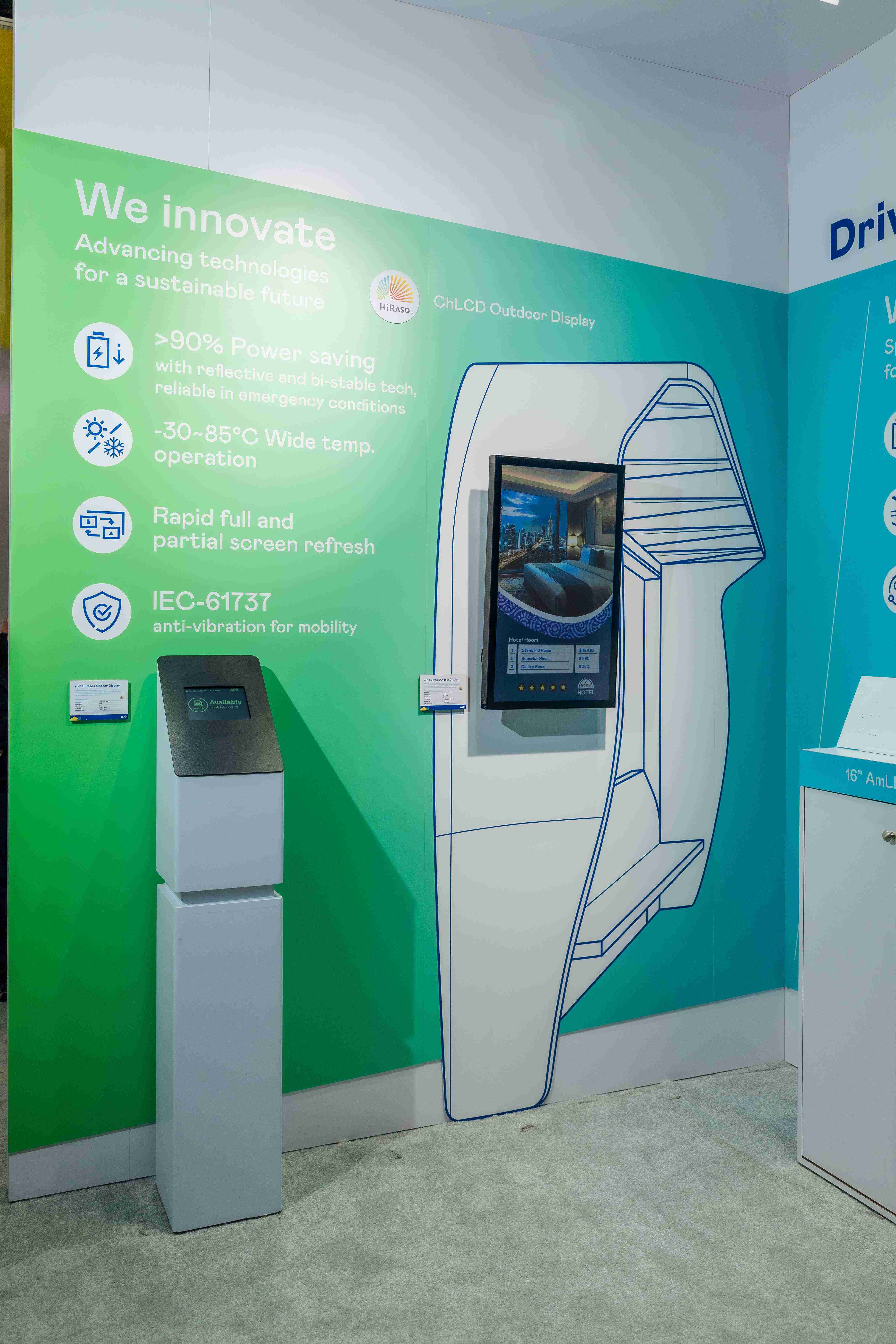HiRaso胆固醇液晶显示器运用反射环境光线的方式,,呈现影像显示时零耗能的环保省电诉求,,光线愈强愈能呈现绝佳的色彩饱和度及显示效果,,同时在摄氏-30度至85度间宽温的使用优势,,,,为户外电子看板的新首选。。。。