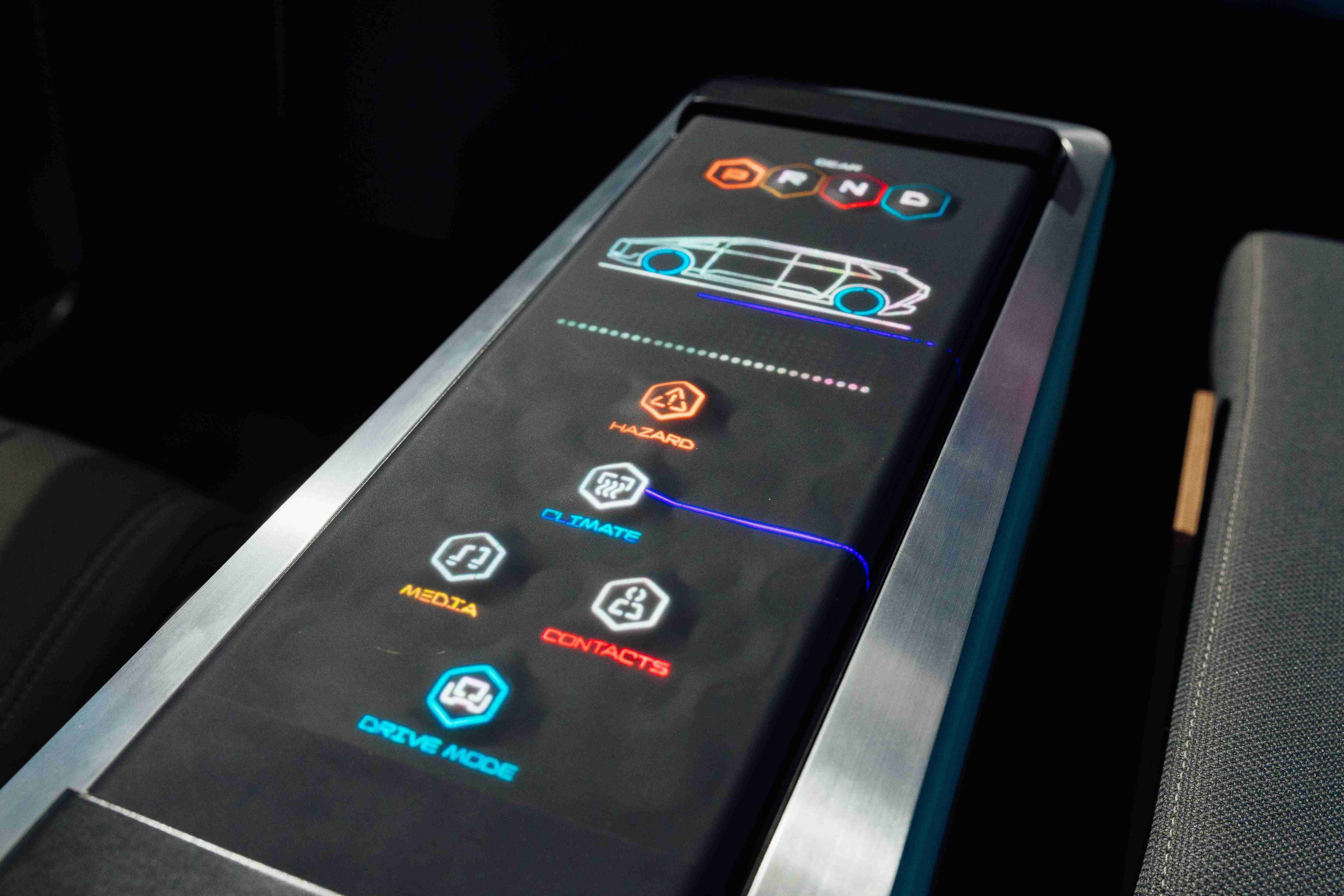 幻境全景天幕(Virtual Sky Canopy)将无缝拼接大型化的透明Micro LED显示器融入至天窗,,带来沉浸式体验,,,,将人机介面扩展至整个座舱。。 人生就是博光电以人性化的设计引领直觉式的人机互动,,,,透过多变形态中控显示(Morphing Center Control)、、、、隐藏式智驾介面(Foldable Cruise Pilot)等解决方案,,让乘用者依据自身需求调整、、、控制座舱内所需功能。。。