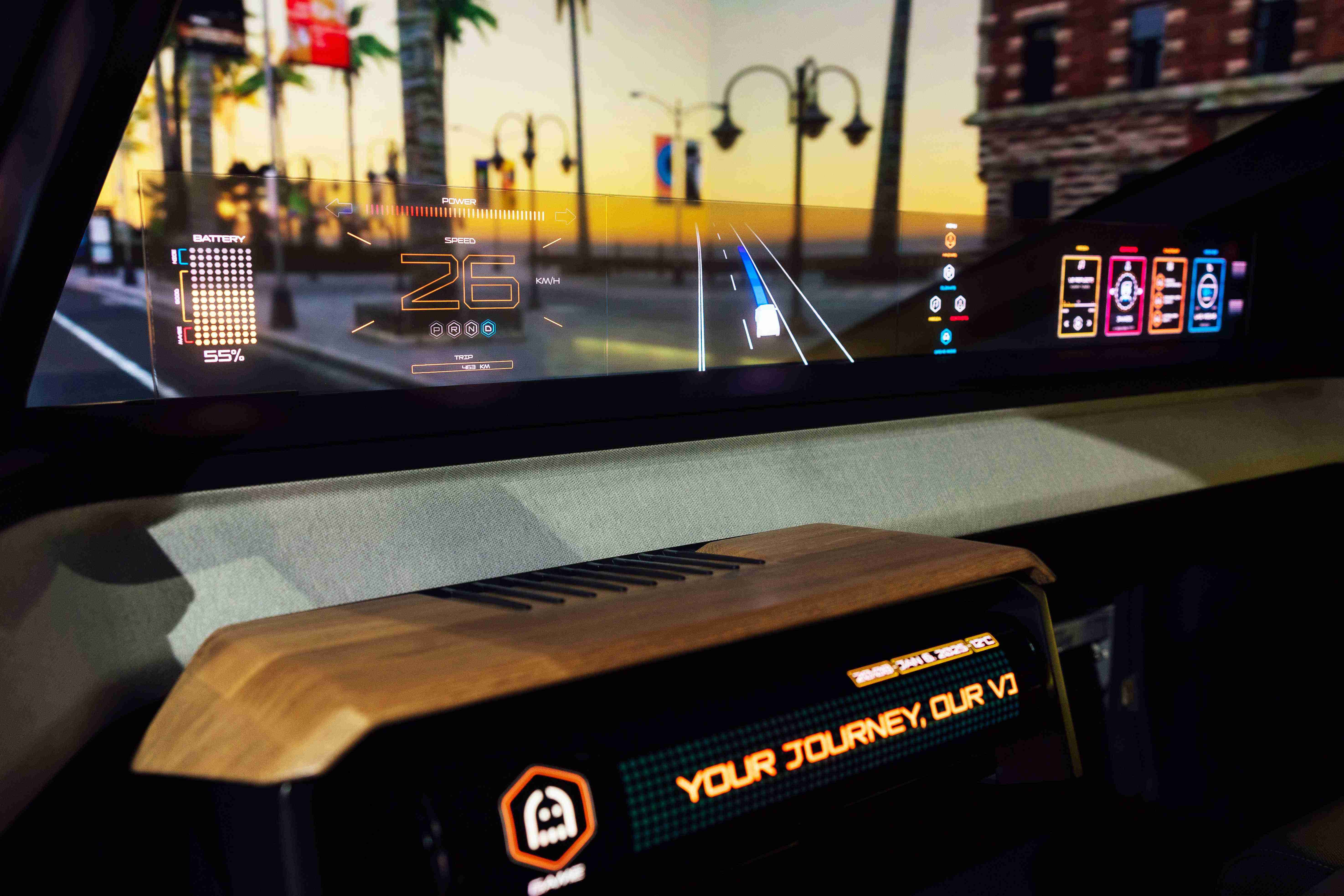 隐藏式智驾介面(Foldable Cruise Pilot)在不同模式下可以切换显示方式,,,在手动驾驶模式时,,,显示器可以在半收合状态下,,,,仍呈现所需资讯;自驾模式时,,,,显示器可以完全展开,,满足不同的多媒体娱乐需求。。 人生就是博Smart Cockpit 2025 在车头及车尾搭载合作伙伴Ennostar开发的互动式矩阵显示器(Interactive Matrix Display),,其突破传设计框架,,,,利用优化的光源整合技术,,提供更高亮度与对比度的显示效果,,营造驾车者个性化风格并传递讯息。。。。