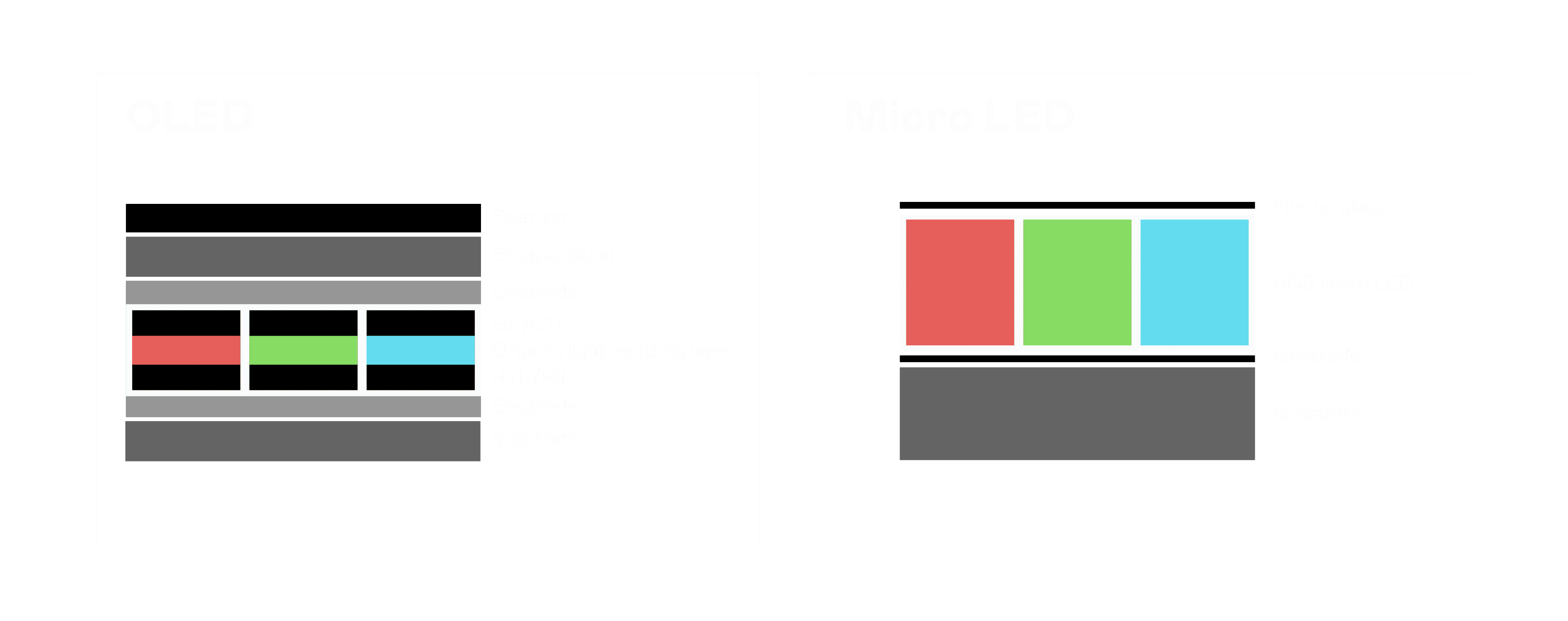 以 LED 做为显示画素,,,,可让 LED 的发光效率发挥到极致,,从而让显示器具备优异的亮度表现,,不论是在户外或室内,,,,均具备出众的显示效果。。同时,,,与使用有机材料的 OLED 相比,,,LED 具备更稳定、、寿命更长的特性,,不仅不会有画面烙印问题,,而且更不容易出现故障、、、、坏点。。。。