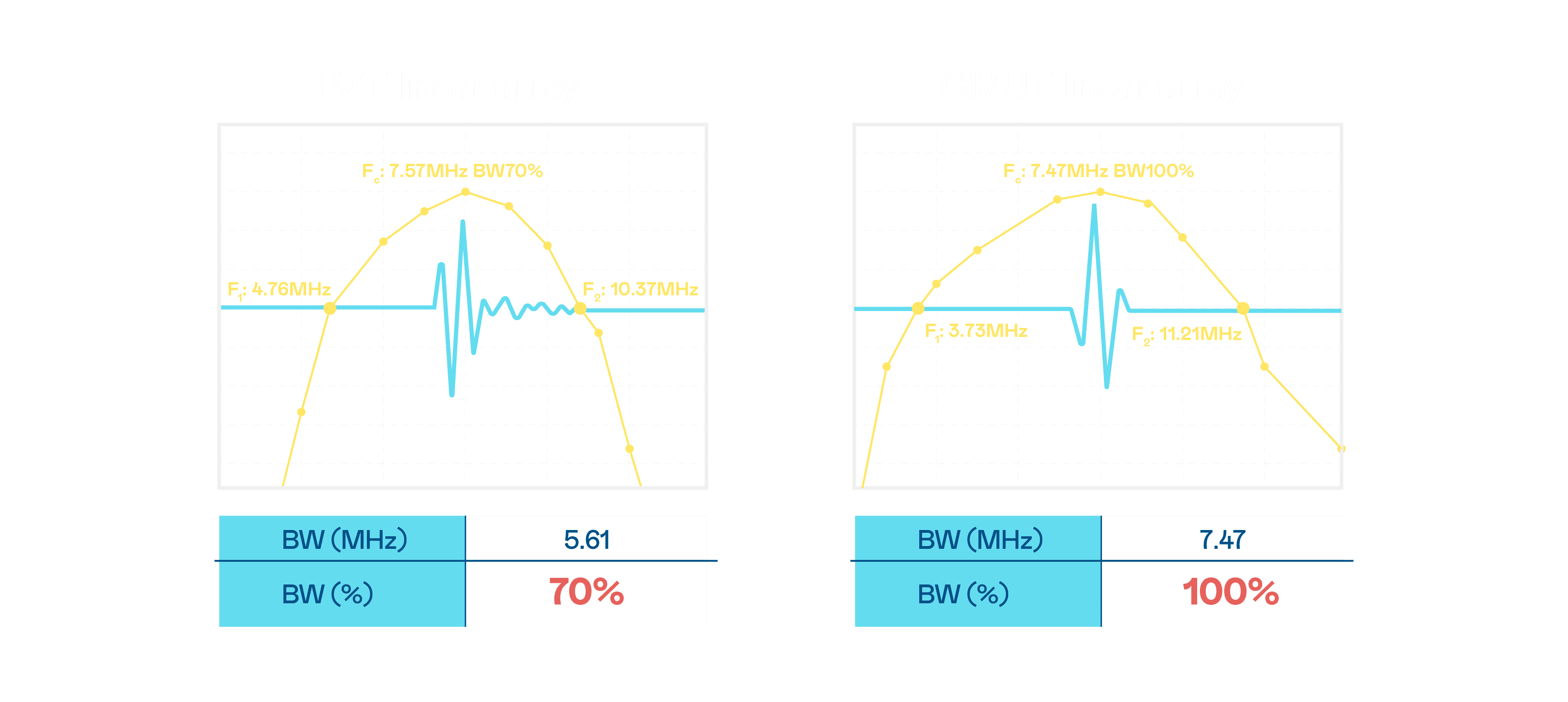 超音波影像的解析度高低,,,,首先取决于探头能发出的讯号频宽。。人生就是博 CMUT 可提供高清晰的超音波讯号,,,提供高频宽、、高灵敏度、、影像纹理细节更高的超音波影像,,,协助医护人员缩短影像判读时间及利用精准的医疗影像进行诊断。。。